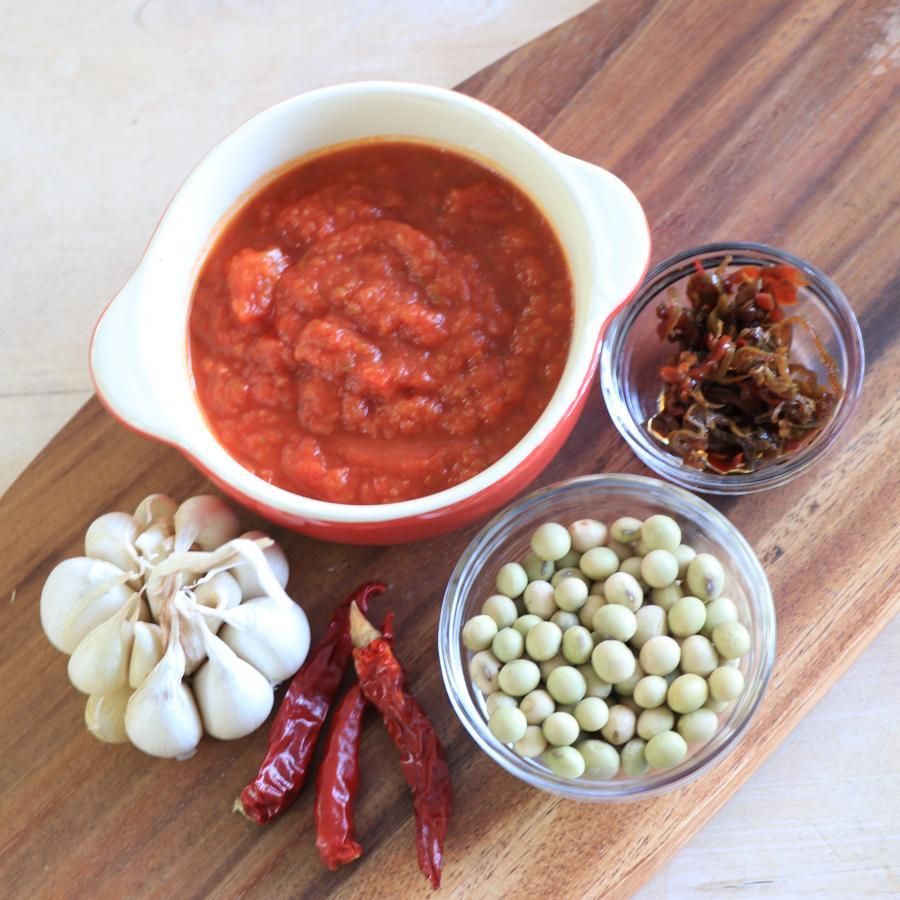 原材料 トマト・玉ねぎ・人参・セロリ・大豆(国産・遺伝子組み換えでない)・タコ・EXVオリーブオイル・国産にんにく・唐辛子醤油(大豆・麦含む)・塩・胡椒