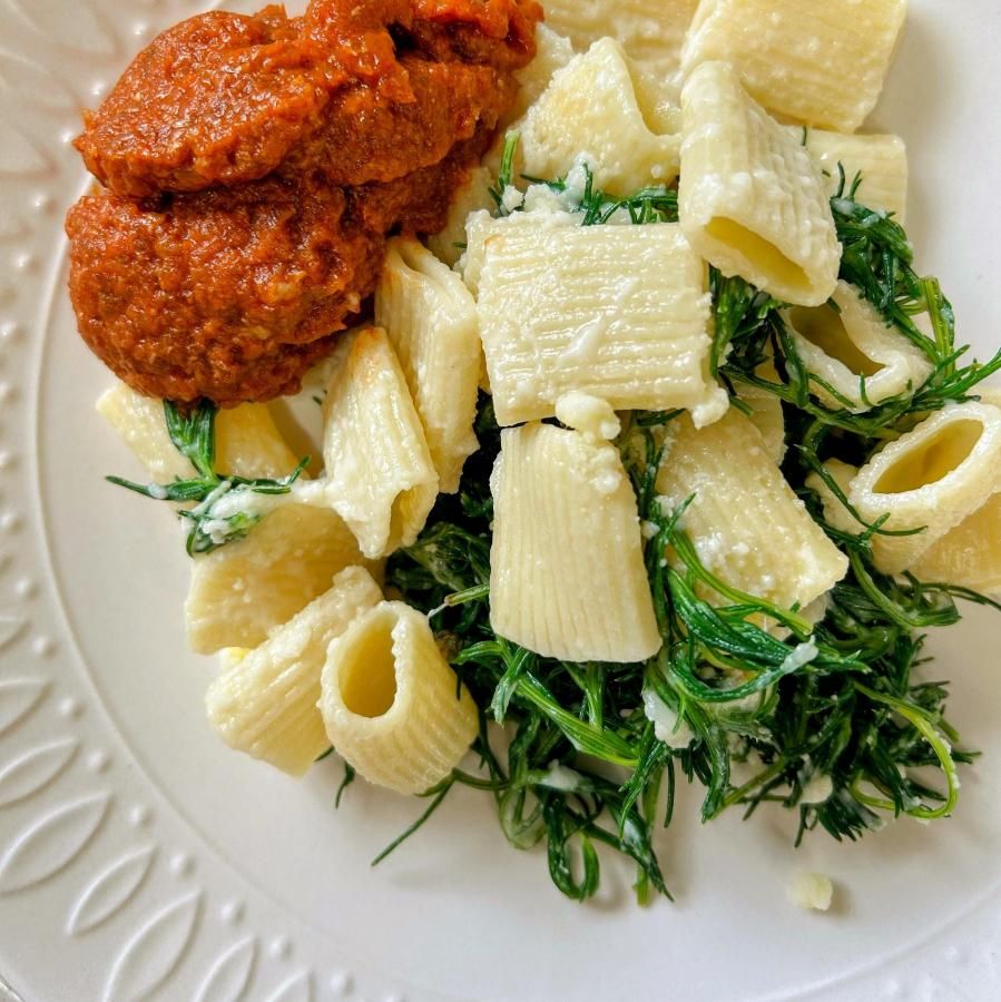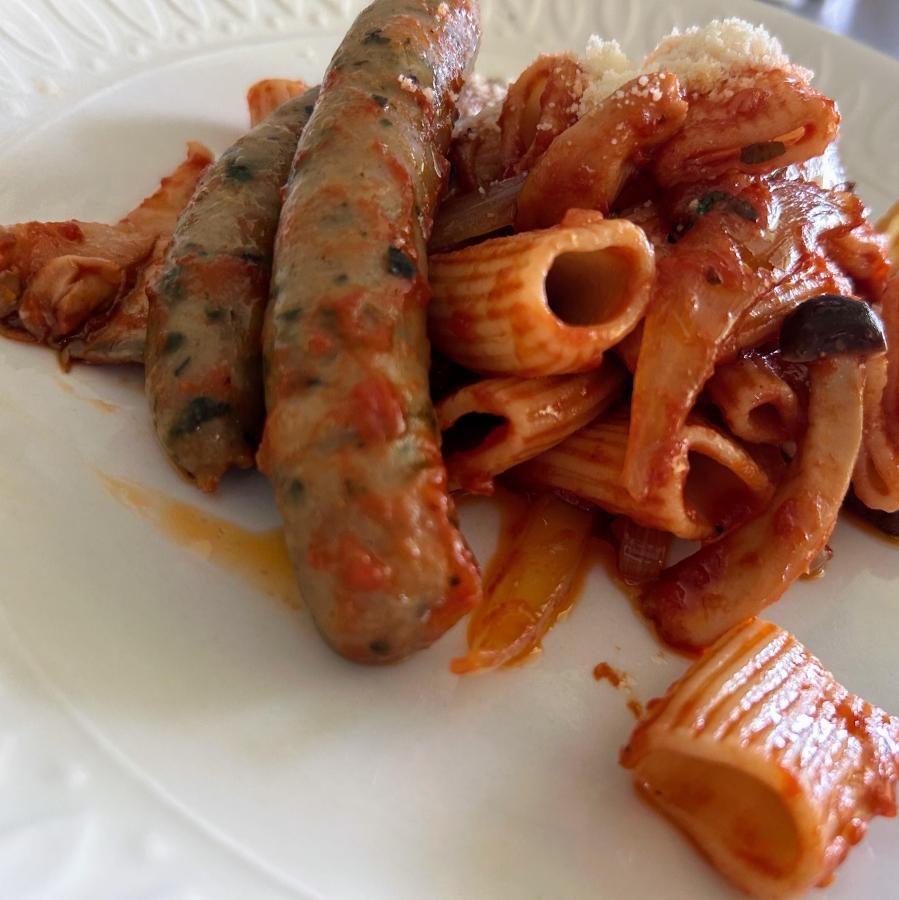 ミートソースはテッパンですが、意外とジェノベーゼともあったり。ショートパスタの中で一番オールマイティーです。