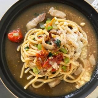 【旬をいただく】プチトマトた〜っぷりの和ペペロンチーノスープ